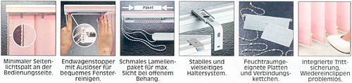 Lammelenvorhänge werden wie Gardienen vor die Fenster gezogen. Dabei haben Sie